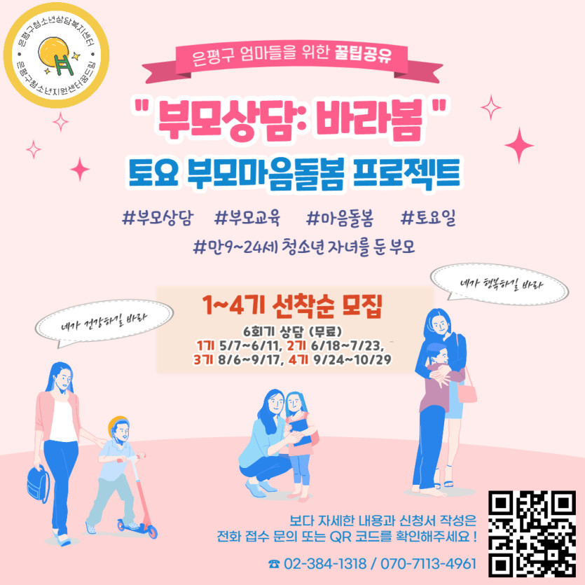 문의: 은평구청소년상담복지센터 통합지원팀 김민주 02) 384-1318 / 직통☎ 070-7113-4961