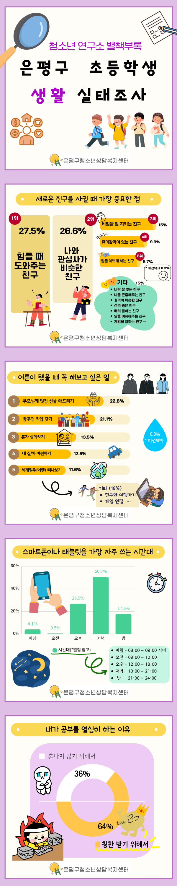 - 다음글청소년연구소 별책부록 3탄! <은평구 중학생이 가장 좋아하는 요일은 O요일!? / 평균 등교시간은?> 24.08.16