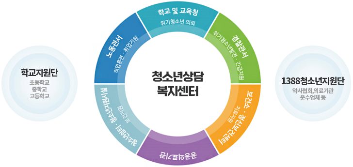 - [상담지원단] : 청소년을 지도, 교육하기 위한 인적 인프라 구축 및 활용을 통해 위기 청소년 조기에 발견하고 위기 개입 및 상담지원